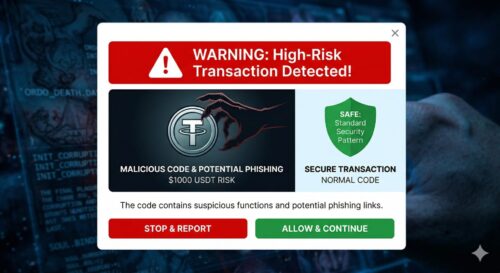 あなたの画面の裏側では「USDTをすべて引き出す」という悪意あるプログラムが走ります。